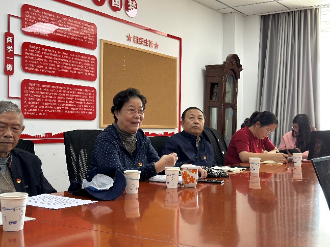 赵云慧带领大家共同重温了总书记的重要指示精神。离退休党支部各位同志分享自己了的学习心得。刘淑玲老师提到,习近平文化思想在党的宣传思想文化事业方面具有深远意义,在新的起点上,要坚持“两个结合”,肩负起新的文化使命,推动马克思主义中国化时代化。