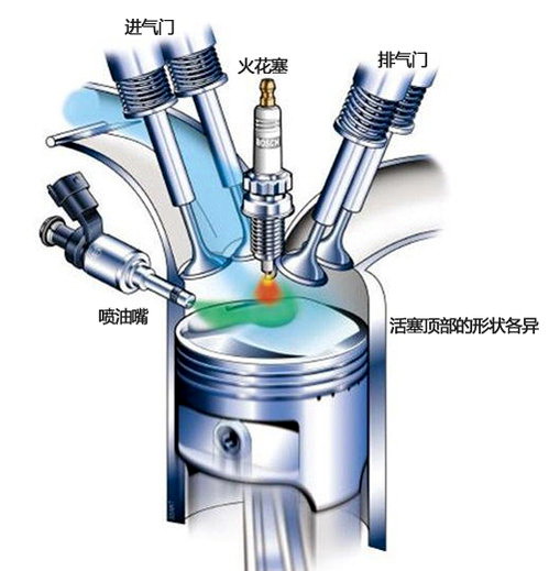 当燃油喷射到缸内后,喷油嘴安装的位置和不同的活塞顶部形状也影响燃气和空气的混合质量,由于它们的工作温度相比于一般发动机要高,对于喷油嘴、缸体和冷却系的要求也就要高一些。现在有些新型的缸内直喷发动机采用了散热效果更好的铝合金缸体,在保证强度的同时,它们还采用了强化的冷却系统,使得发动机拥有了更好的热效率。