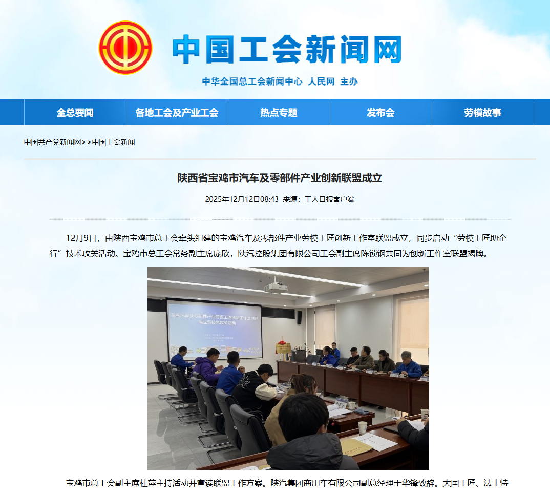 (出处:工人日报客户端,链接:http://acftu.people.com.cn/n1/2025/1212/c67502-40622839.html陕西省工业和信息化厅,链接:http://gxt.shaanxi.gov.cn/xw/dsxw/202512/t20251211_3594894.html