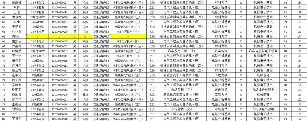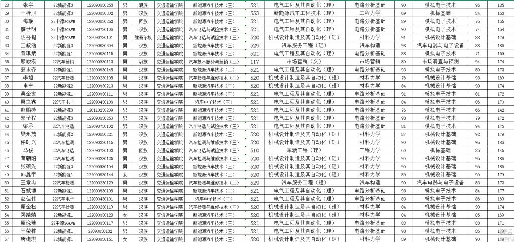 注意事项:请考生认真核对个人信息及成绩数据,如有异议请及时联系教学与管理科(汽车机电大楼205室)。