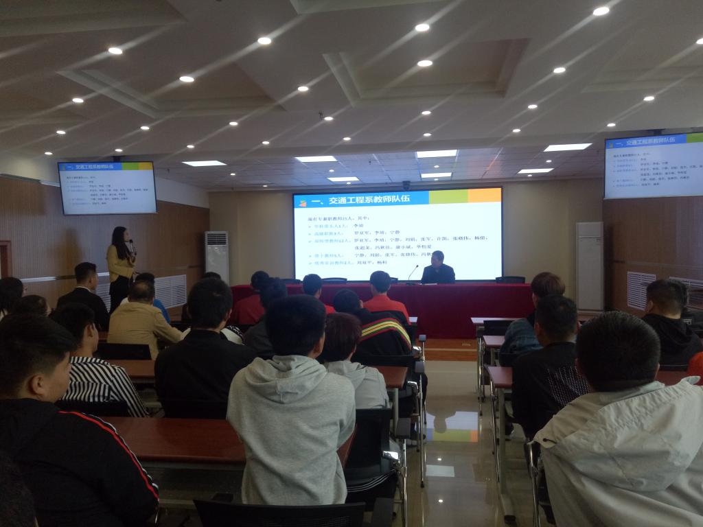 为了使广大新生能够更好更快地适应大学学习生活,2018年10月16日下午,我系2018级新生专业教育暨迎新会在汽车机电大楼4楼视频会议室顺利举行,交通工程系主任罗亚军、副主任李靖及交通工程系全体教师、优秀员工代表参加了本次大会,本次大会由副主任李靖主持。