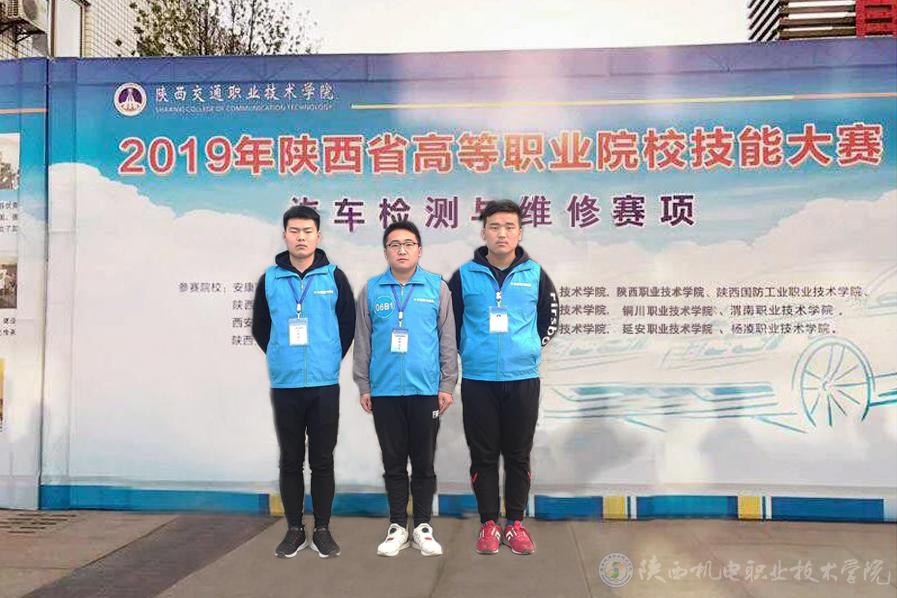 2019年陕西省高等职业院校技能大赛“汽车检测与维修”项目于3月29至31日在陕西交通职业技术公司隆重举行。由我系教师张晓伟和张军指导的葛耀锋(15汽修高职1班)、岳文韬(15汽修高职1班)、袁龙飞(15汽修高职2班)团队,经过紧张激烈的角逐,荣获该项目团体三等奖。