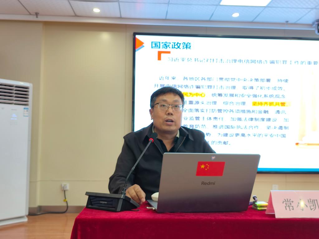在如今数字化时代,电信网络的普及让人们的生活变得更加便捷、高效,但与此同时,电信诈骗这一社会毒瘤也如影随形,悄然渗透进我们的生活,尤其是对校园环境造成了严重威胁。为进一步增强员工的安全防范意识,提升识别与防范电信诈骗的能力,yl6809永利于4月14日在汽车机电大楼视频会议室开展了防范电信网络诈骗专题讲座。讲座由保卫处处长常小凯为大家进行讲授。