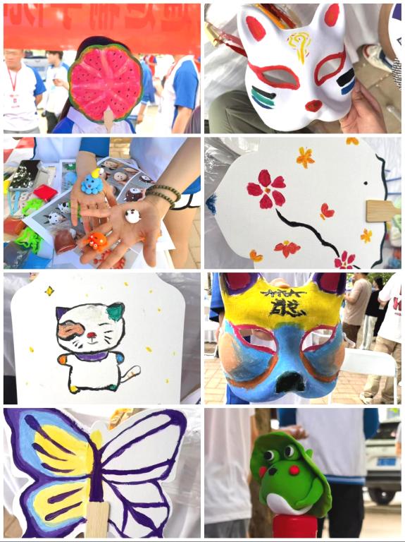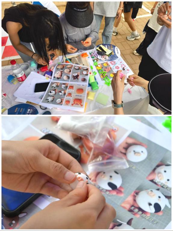 手工制作工坊。同学们专注地用黏土捏出各种形状,有人塑造可爱小动物,有人制作创意摆件,指尖的揉捏、塑形间,不仅释放了压力,还在亲手创造中收获满足感,一件件充满童趣的作品展现着大家的想象力与创造力。