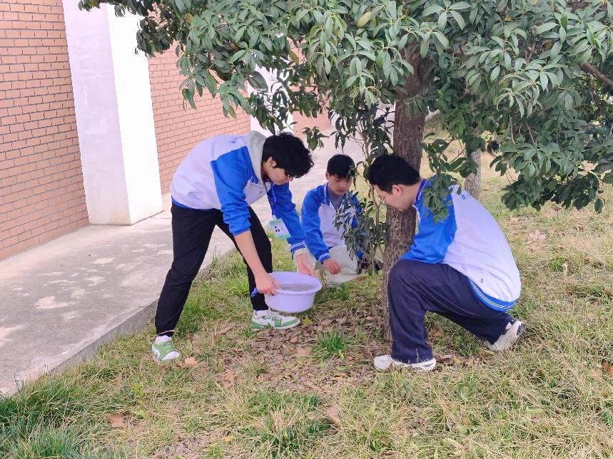 一组负责为校园绿植浇灌养护,小心翼翼地为每一株树木浇水,细致呵护新绿生长;另一组则聚焦校园环境清洁,清理绿化带内的垃圾杂物、擦拭花坛设施,不放过任何一处卫生死角 。劳动现场秩序井然,大家相互配合、默契协作,呈现出一派热火朝天的劳动景象。