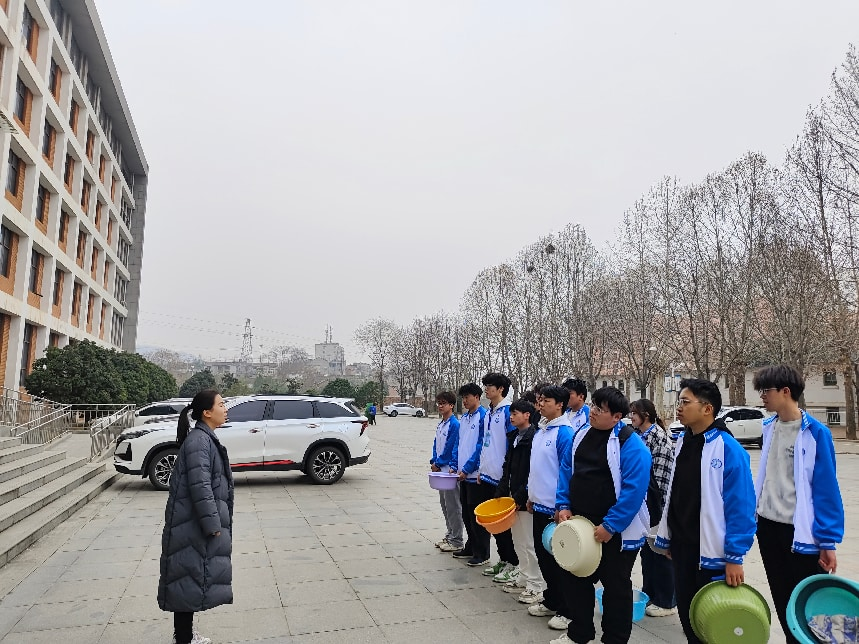 活动伊始,员工办公室主任董妍老师于机电大门口召开动员大会。动员会上,董老师围绕植树节的由来、绿色生态对校园及社会的重要意义展开阐述,号召全体成员以高度的责任感投身实践行动,将绿色理念内化于心、外化于行,用汗水浇灌希望,用行动守护绿色。