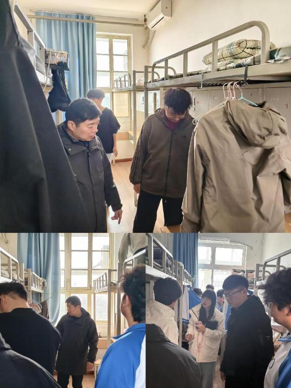 检查组一行前往22号楼25智联2班宿舍,进行了细致入微的现场查勘。从床铺平整度、物品摆放秩序,到地面清洁程度、用电安全隐患,检查组逐一进行查看。王枢书记在现场亲自示范标准内务整理方法,细致讲解日常收纳与卫生保持的实用要点,以实际行动引导同学们树立“宿舍是我家,文明靠大家”的理念。