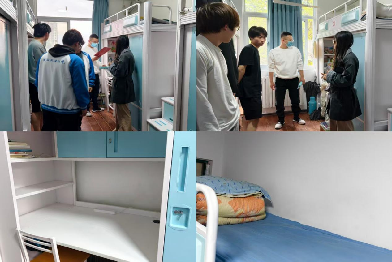 公司教师党员王枢牵头,联合班主任王佐、楼长雷沙沙及优秀团员代表组成专项检查组,对 15 号楼 24 汽车检测 1 班宿舍开展实地督导。检查组重点检查宿舍内务与行为习惯,细致核查桌面、床铺整理情况,排查大功率电器、室内吸烟等安全隐患。针对桌面杂乱、床铺不规整等问题,王佐老师现场示范整理标准,结合 5S 管理理念讲解,引导员工养成定时整理、自觉维护的习惯,强化自我管理与集体责任意识。