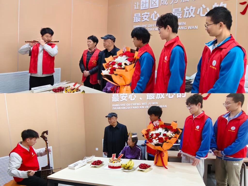 志愿者们还精心准备了文艺节目。悠扬婉转的马头琴独奏缓缓响起,旋律深情绵长,饱含着对老人健康长寿、平安喜乐的美好祝愿;清脆悦耳的笛子演奏旋律悠扬,为现场增添了灵动与温馨,精彩的节目赢得了老人和现场社区工作人员的阵阵掌声,欢快的气氛感染着现场每一个人。当生日蜡烛点亮,大家一同唱响生日歌,齐声祝愿老人福寿安康、笑口常开,老人在众人的祝福中许下心愿,现场满是温情与感动。