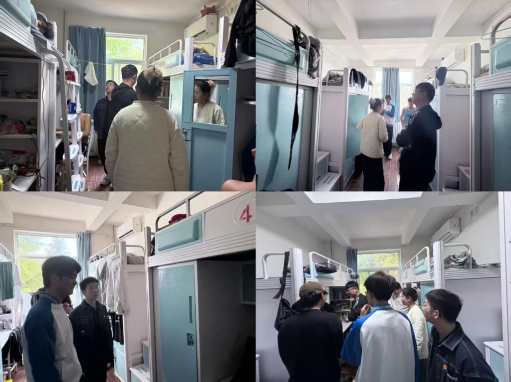 教师党员白瑞刚主动靠前、示范带头,联合班主任黄振子、楼长 董妍组建专项帮扶小组,深入 15 号楼 24 智能网联班员工宿舍开展精准帮扶工作。帮扶小组严格遵循 5S 管理标准,对床铺规整、物品分类摆放、桌面清洁、地面卫生、阳台收纳、隐蔽区域清理等内务细节逐一检查,同时全面排查违规电器、私拉电线、杂物堆放等安全隐患,实现宿舍全覆盖、无死角、无遗漏。