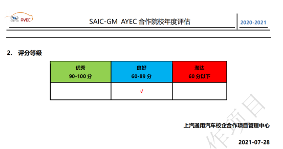 2021年9月6日,上汽通用汽车传来喜报,公司顺利通过上汽通用汽车AYEC 校企合作项目年度评估。本次评估历时9个月,从教学环境、团队管理、车辆设备、班级管理、项目配合度和教学规范等六个方面对全国52所项目公司进行评估。