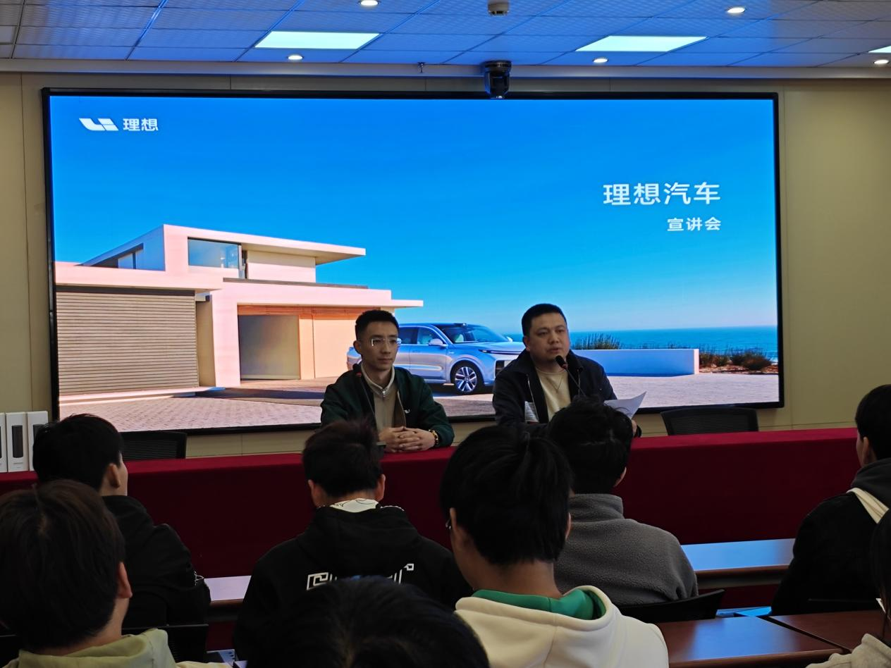 理想汽车校企合作处的杨经理主要从公司背景、常州制造基地介绍、福利和薪资待遇、企业文化及员工未来发展等方面,为同学们进行了详细说明。理想汽车公司是一个年轻的公司,也是一个正在处于快速发展时期的公司,他们近期正在各大高校毕业生中筛选更多优秀的人才加入公司。在宣讲过程中,杨经理通过小礼品奖励的方式和同学们积极互动、交流观点,激发了同学们的热情。许多同学在听完宣讲会后表示理想汽车薪资福利待遇较高,生产设备先进、公司文化富有吸引力,非常想进入该公司实习。