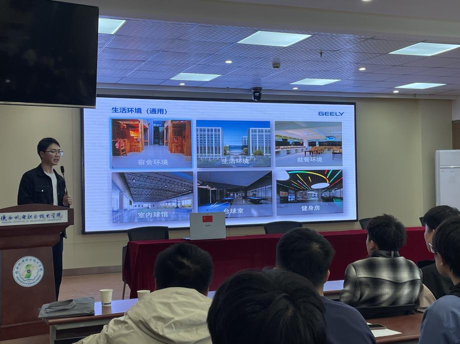 2025年4月18日下午,宝鸡吉利汽车有限公司于汽车机电大楼视频会议室举办线下宣讲会,旨在为公司2023级即将踏上就业实习岗位的同学,搭建深入了解企业、促进人才供需对接的平台。