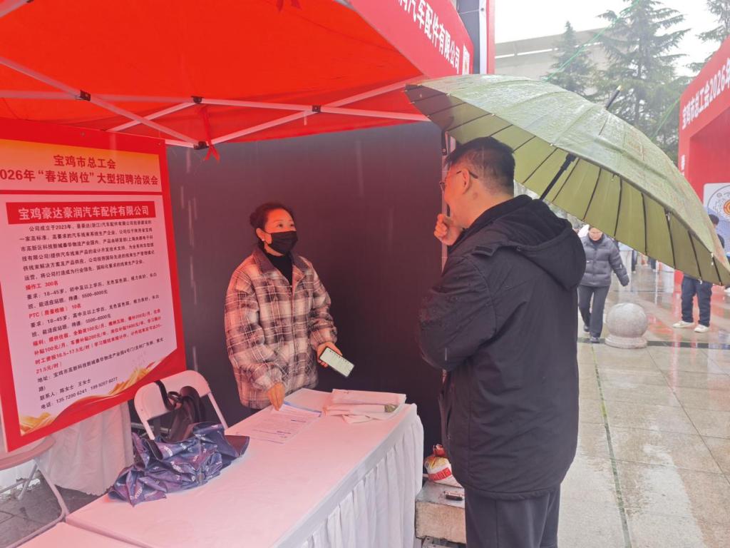 为扎实推进访企拓岗促就业工作,精准对接企业人才需求,为员工开拓优质就业岗位,3月13日,yl6809永利团总支副书记、辅导员李月阳参加宝鸡市总工会2026年“春送岗位”系列招聘会,并重点与宝鸡豪达豪润汽车配件有限公司、宝鸡地通汽车制品有限公司负责人开展深入交流沟通,切实将访企拓岗落到实处。