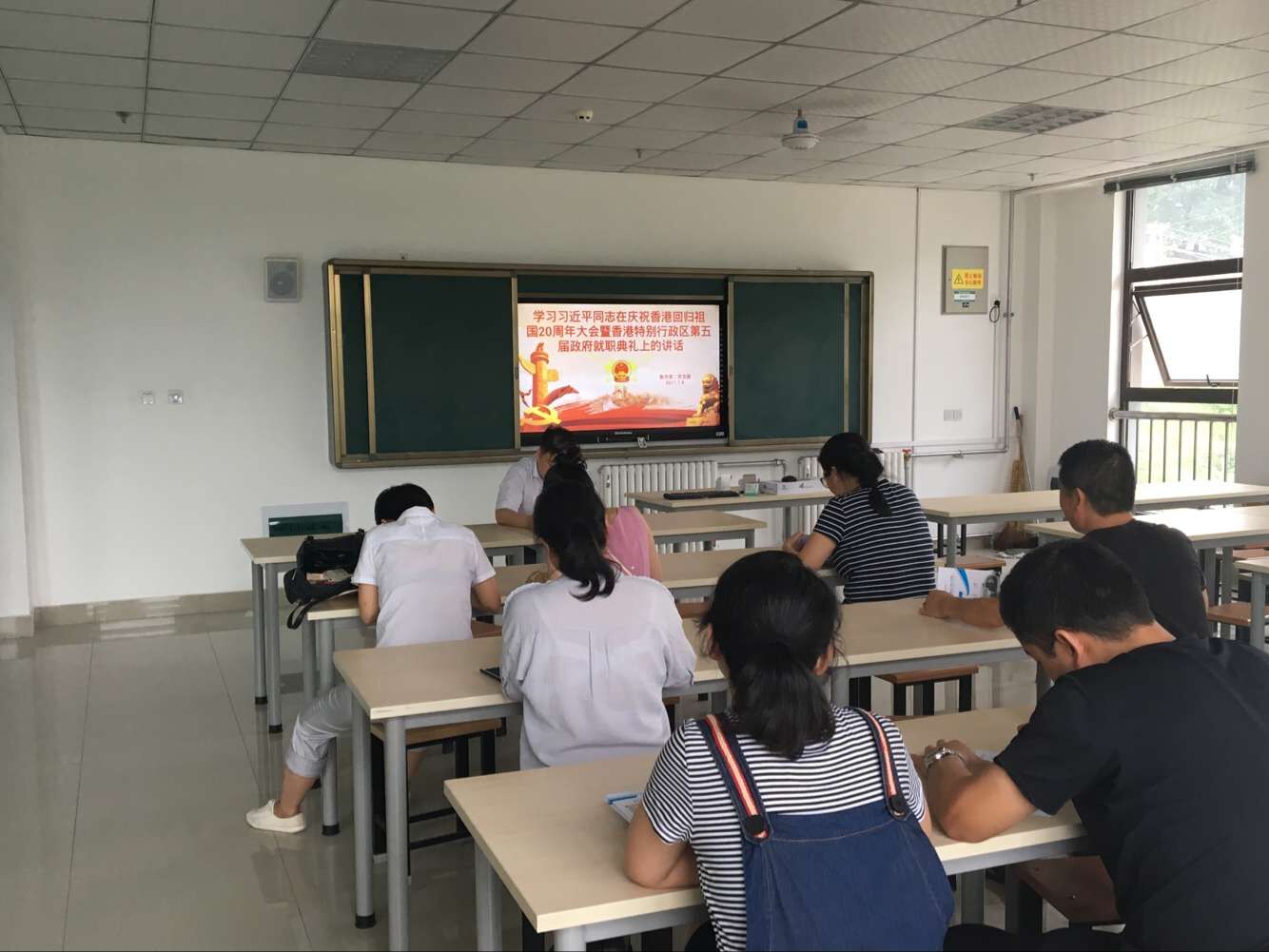 2017年7月4日下午,教学第二党支部在汽车机电大楼310教室召开支部党员学习会,支部书记罗亚军同志就“五个扎实”和习近平同志在庆祝香港回归祖国20周年大会暨香港特别行政区第五届政府就职典礼上的讲话进行深入解读。
