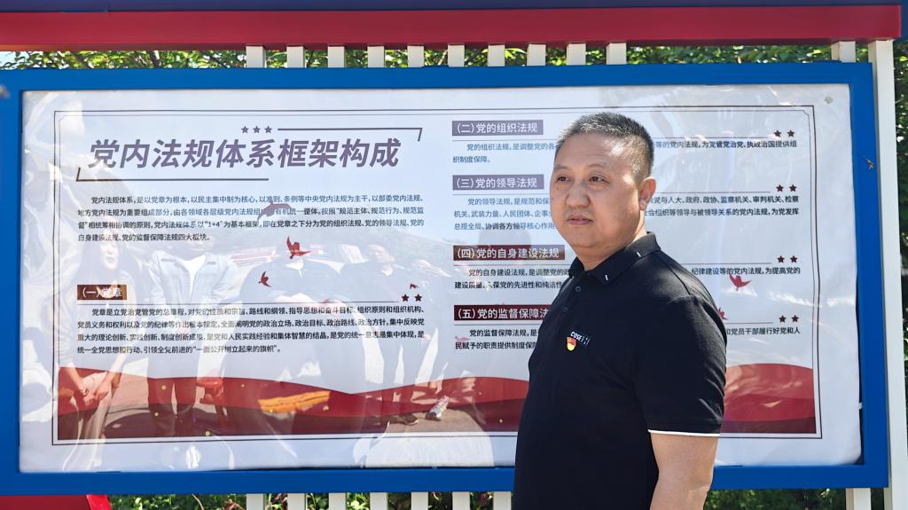 在金台法治文化园内,党员们首先参观了法制文化展览,深入了解了我国法治建设的历程和成果。随后,在园内主题展板前李靖为支部全体党员上了一堂生动的党课,以党内法规体系框架构成、违纪与纪律处分等内容为主线,详细讲解了《中国共产党纪律处分条例》的相关规定,强调了加强党纪学习教育的重要性和必要性。