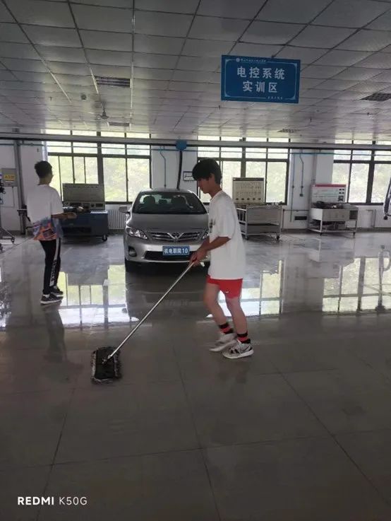本次活动围绕美化教学环境,维护教学设施展开,参与活动成员进行了地面的卫生清洁、实训车辆的清洁和桌椅板凳的维修。