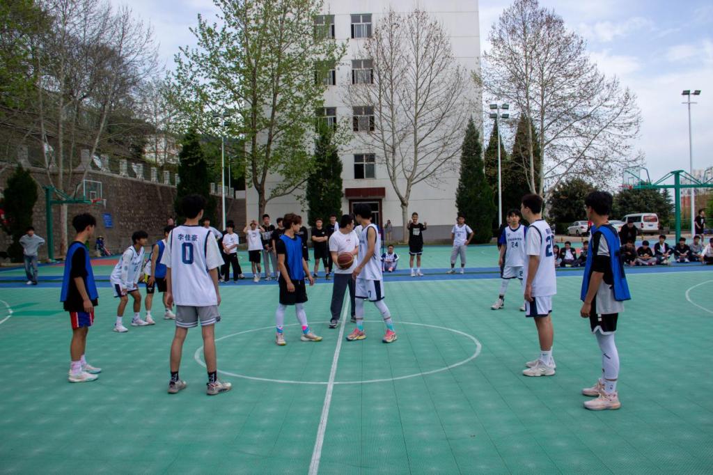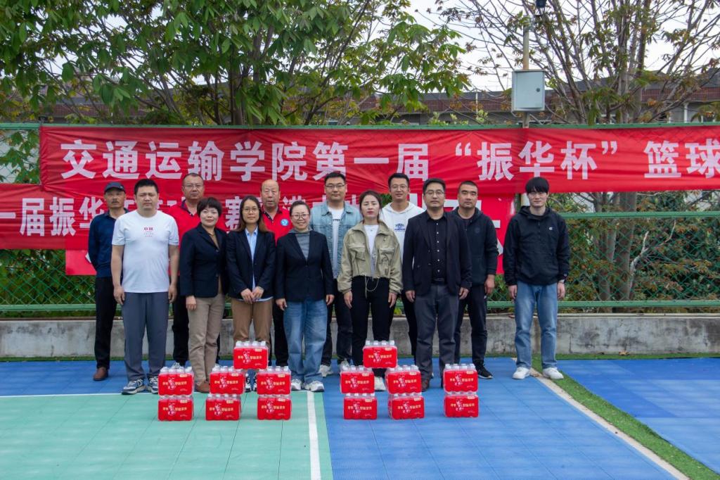 新能源系主任张超龙为首场比赛开球,“振华杯”篮球赛正式开赛。