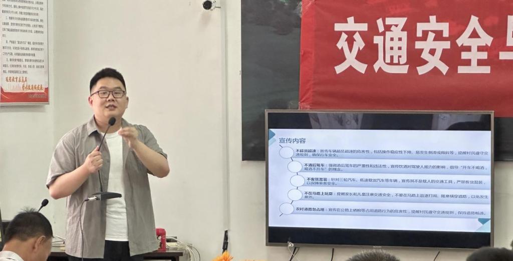 “交通安全与防溺水宣讲团”团队的杨科和李子卓老师为村民们带来了一场别开生面的交通安全与防溺水知识宣讲会,结合山村道路实际,用通俗易懂的语言讲解了道路交通安全法规、常见乡村道路交通事故案例及预防措施,强调了汽车、农用车、摩托车、电动车驾驶知识与技巧,国道、乡道、村道、村口路口等道路行驶注意事项,如何正确佩戴安全头盔、不酒驾、不超载、不超速等交通法规。同时,通过开展“交通标识连连看”趣味活动,使村民进一步加深了对交通安全标识认识和理解。针对夏季溺水事故频发的特点,曹军霞老师通过近几年真实案例讲解、互动问答等形式,让家长和孩子们深刻认识到儿童防溺水宣传教育的重要性和溺水救助知识和技能,提高了家长和孩子们防溺水的安全防范意识和救助技能。