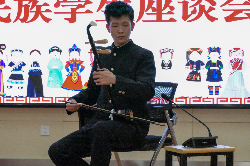 会上,回族员工代表沙霄迪汇报了延安研学情况,藏族员工代表白玛旺青展示了藏族文化和习俗,维族员工代表阿卜杜拉展示了维吾尔族文化和习俗,少数民族员工代表还进行了歌曲和二胡等民族特色歌曲展示。与会领导还与参加座谈会的员工进行了座谈交流,了解员工在校期间的学习生活情况。