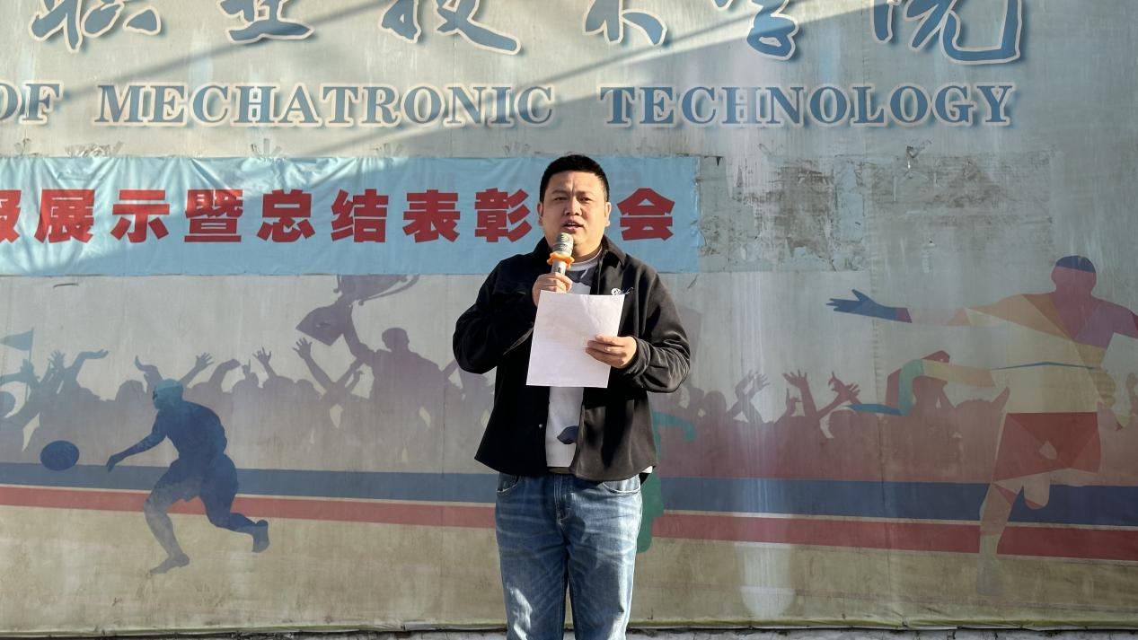 24新能源5班李健以《弘扬志愿精神,传递青春温暖》为主题做国旗下演讲。