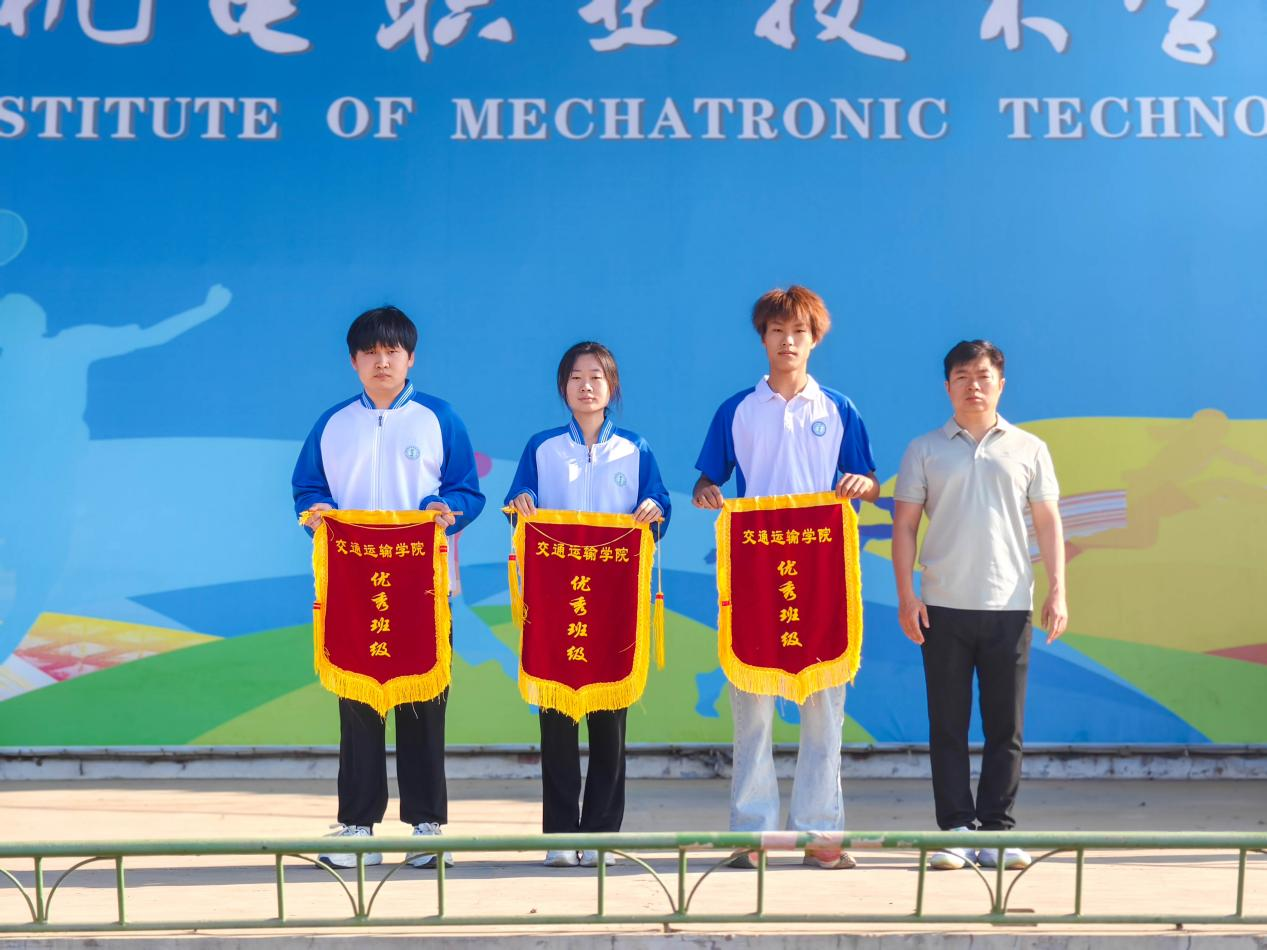 党支部书记王枢为上周优秀班级颁发流动红旗