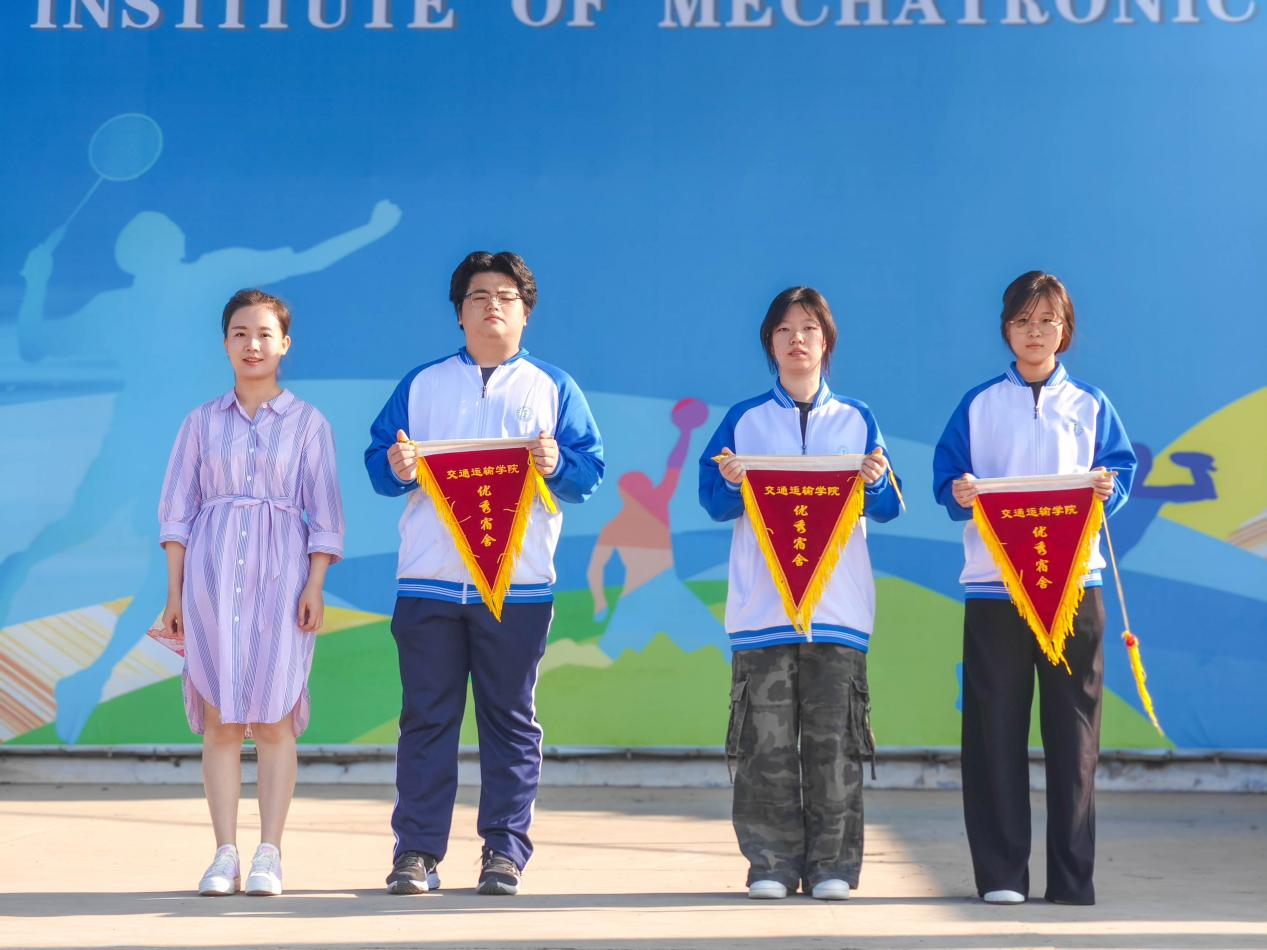 员工办公室主任董妍为上周优秀宿舍颁发流动红旗