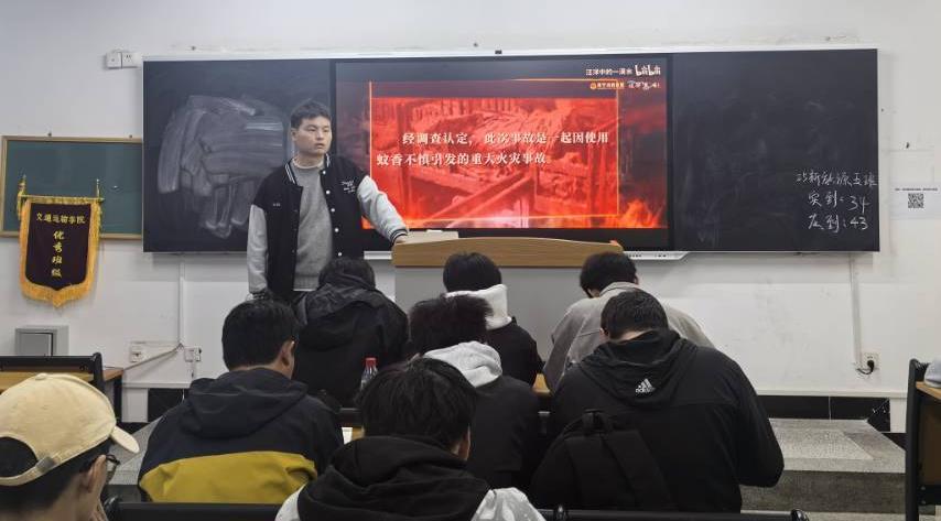 班会现场,班主任化身安全讲师,通过播放校园火灾警示教育短片,结合近年典型校园火灾案例,直观剖析宿舍乱拉电线、教室违规使用电器、乱扔烟头火种等常见火灾隐患的危害,重点强调教室、宿舍、实验室等人员密集场所的防火注意事项。