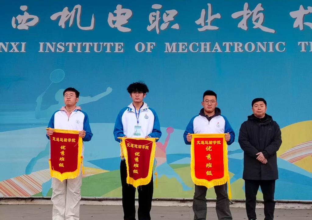 党支部书记王枢为上周优秀班级颁发流动红旗。