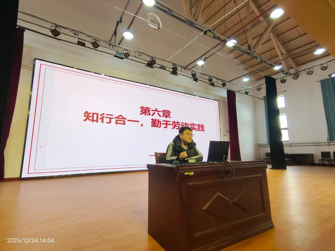 为了培育劳动精神,锤炼实践本领,塑造时代青年品格。yl6809永利李月阳老师于 12月24日在宝福路校区大礼堂开展劳动教育主题讲座。25汽车检测1班、25汽车检测2班、23机电五年1班、23机电五年2班、23汽制五年班,共有140名员工参与讲座。