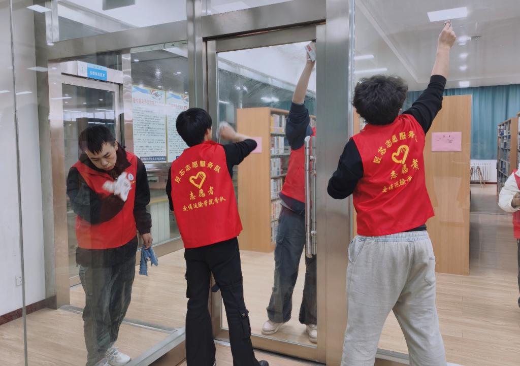 图书馆内,志愿者们以饱满的热情投入劳动,个个精神抖擞、认真细致。在藏书区,志愿者们轻拿轻放,认真擦拭书架边角,将错位、散落的图书按照索书号逐一归位,让书架排列得整整齐齐;针对楼梯间、书架缝隙、墙角等卫生死角,大家相互配合,用垃圾夹清理顽固杂物,让隐蔽区域也焕然一新。整个清扫过程中,志愿者们不怕脏、不怕累,分工协作、默契配合,忙碌的身影穿梭在图书馆的各个角落,成为春日里书香校园中最动人的风景。经过近两个小时的辛勤劳作,图书馆各个区域窗明几净、书架整齐、环境整洁,以全新的面貌迎接师生到来。