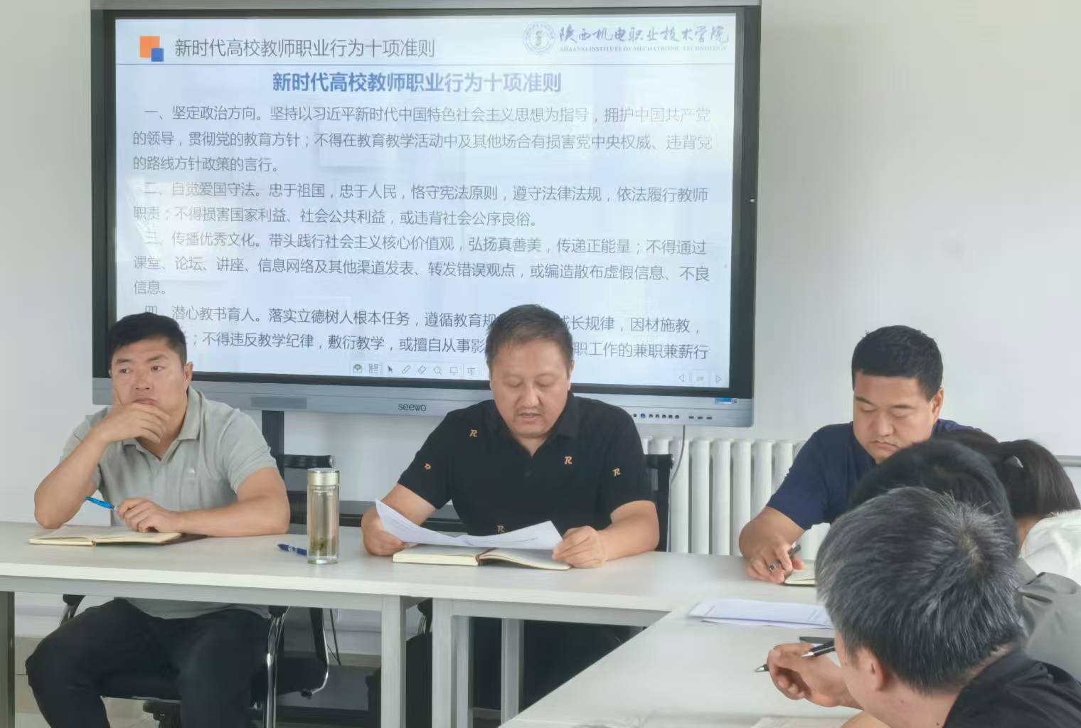 会议伊始,经理李靖带领全体教职工深入学习《新时代高校教师职业行为十项准则》,结合公司实际工作,强调教师要严守师德规范,筑牢思想防线。同时,重点强调了新生学平险的购买,指出学平险是保障员工安全、减轻家庭风险的重要举措,要求全体教师加强宣传引导,确保新生参保全覆盖。