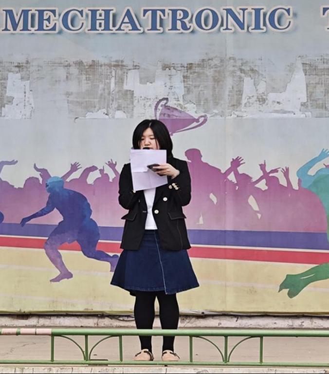 员工代表21汽制五年班王伯骏同学以《书香校园》为主题作国旗下演讲,他呼吁广大同学要以第六届读书月活动为契机,要晨读经典,传承国学,以读书增智慧,以读书促养成,以读书塑人格,共同营造校园内浓厚的读书氛围。