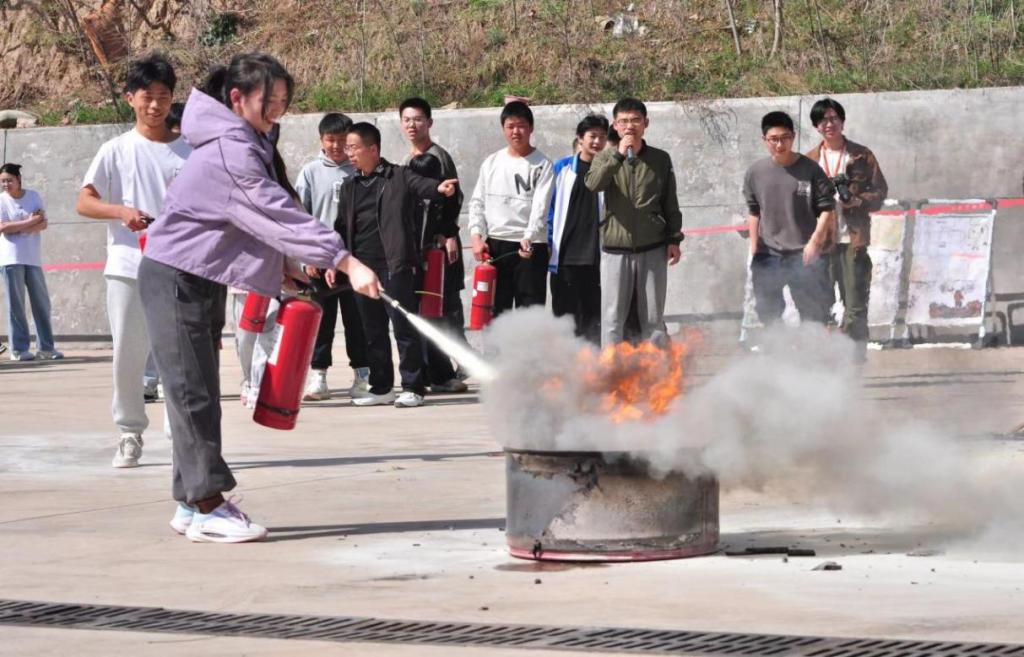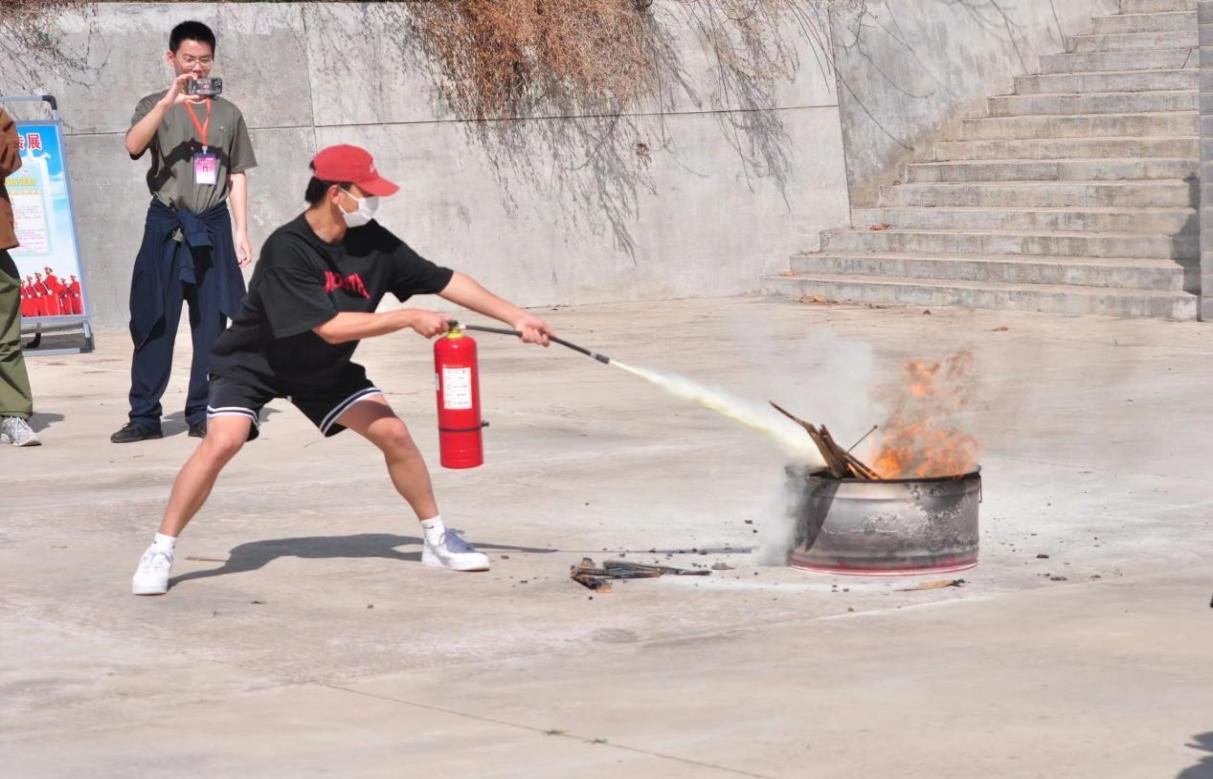 随后,保卫处蒋佳伟老师对消防灭火器如何正确使用给同学们进行了详细讲解和现场示范。广大同学踊跃参与,在老师的指导下使用灭火器进行实战灭火演练。