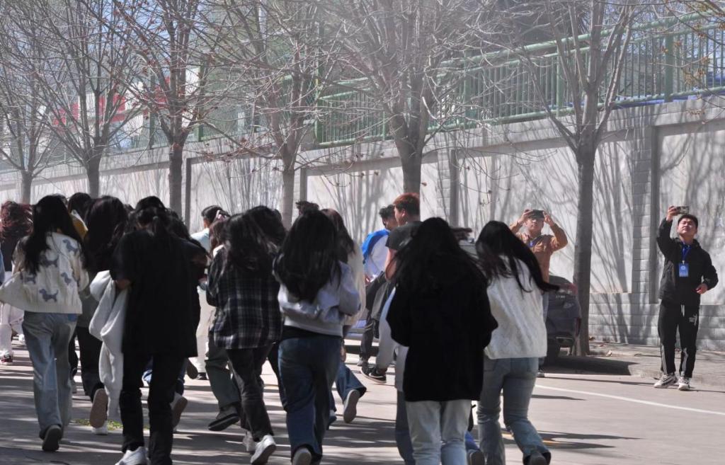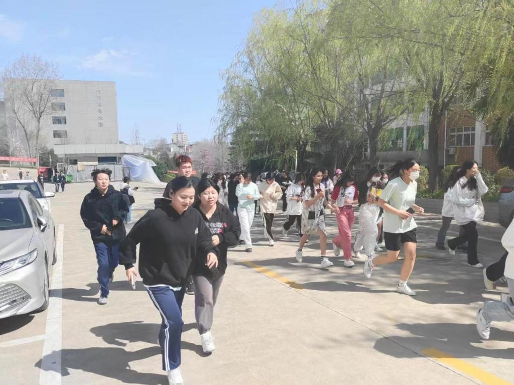 下午14点45分,消防演练警报响起,安全员疏导大家紧急撤离,全体师生迅速进入应急状态,掩住口鼻,根据疏散路线快速撤离到安全集合地点。全部集合后,各班级各部门进行了人数清点并上报负责老师,确保全体师生在规定时间内已安全疏散。