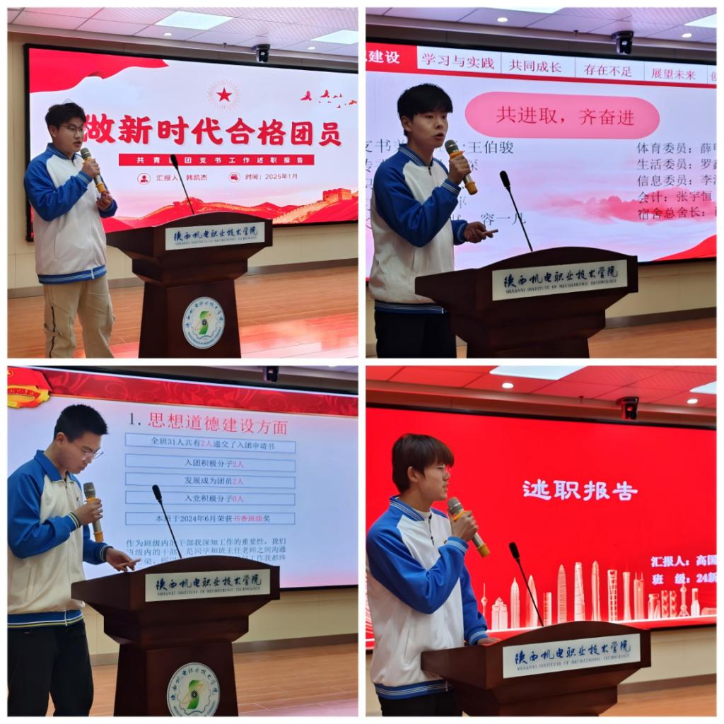 述职环节,各团支部书记使用ppt、图文图表,视频展示等方式,从团组织“三会两制一课”、开展主题团日活动、志愿服务和社会实践等多方面全面总结了本学期内工作成果和取得的成效,反思其中的不足之处,提出了改进的措施,同时也对下学期的工作进行了展望。