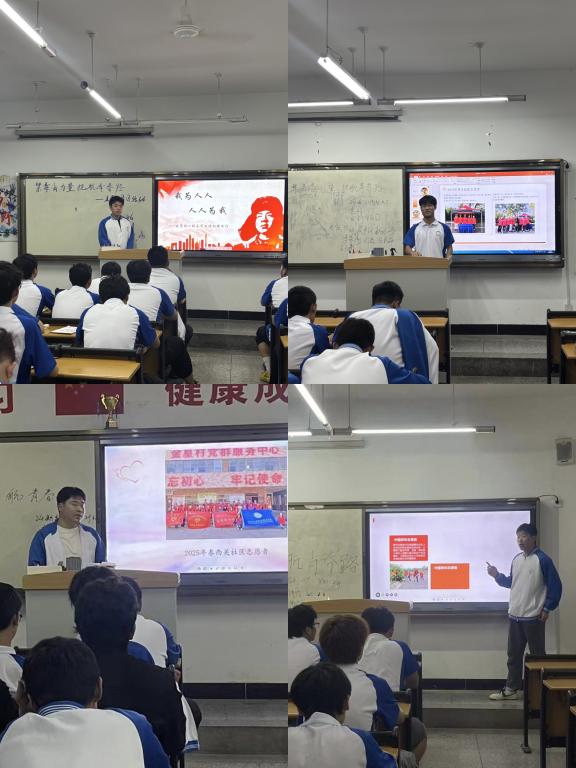 为深入贯彻新时代文明实践精神,大力弘扬“奉献、友爱、互助、进步”的志愿服务宗旨,营造昂扬向上的校园文化氛围,yl6809永利团总支青年服务部于6月12日在大一各班级举办了以“青春志愿行,奉献我先行”为主题的志愿服务宣传活动,共有9位优秀志愿者进行经验分享,24汽车检测2班张攀晨、肖佳宇、韩淞,24新能源4班揣永帅、陈路宽,23新能源2班张辰瑕、21气制五年容一凡、23汽检李阳、23新能源1黄悦雄。