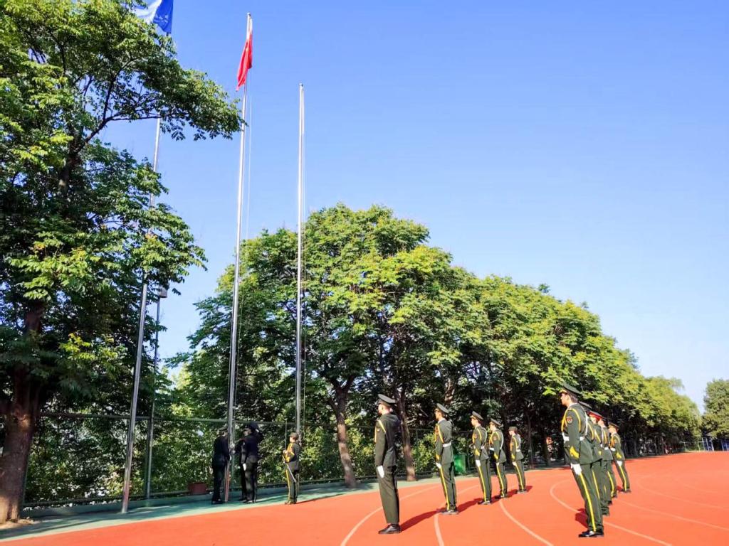 在激昂的国歌声中,英姿飒爽的国旗护卫队迈着整齐有力的步伐护送国旗入场。全体师生庄严肃立,向缓缓升起的五星红旗行注目礼,高唱国歌,现场气氛庄重而热烈。