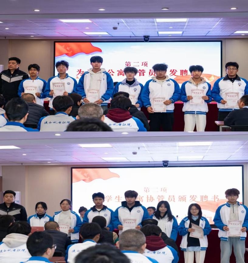 会议现场,员工工作办公室主任董妍宣读了此次活动的方案,明确以汽车行业5S管理标准为蓝本,构建"整理、整顿、清扫、清洁、素养"五位一体的宿舍管理体系。公寓管理科同步聘任14名员工担任内务稽查员并由张海波科长现场颁发聘书,王枢书记与张海波科长共同为"优秀打卡宿舍"颁发奖状以树立标杆、激发全员参与热情。