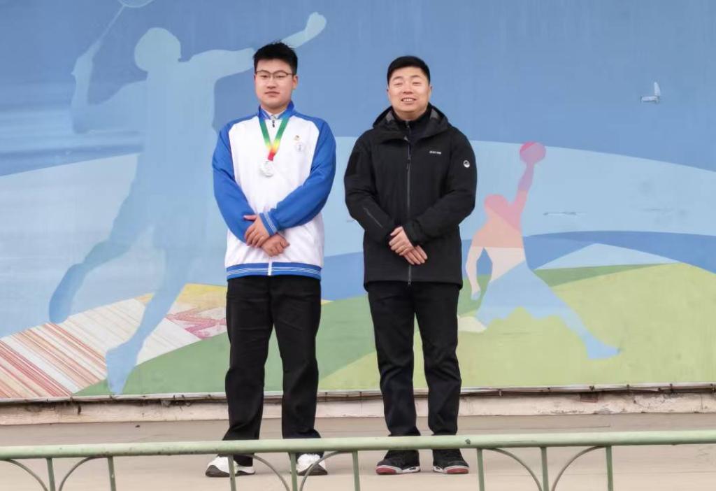 公司党支部书记王枢为韩凯杰同学颁发陕西省职业规划大赛银奖奖牌。