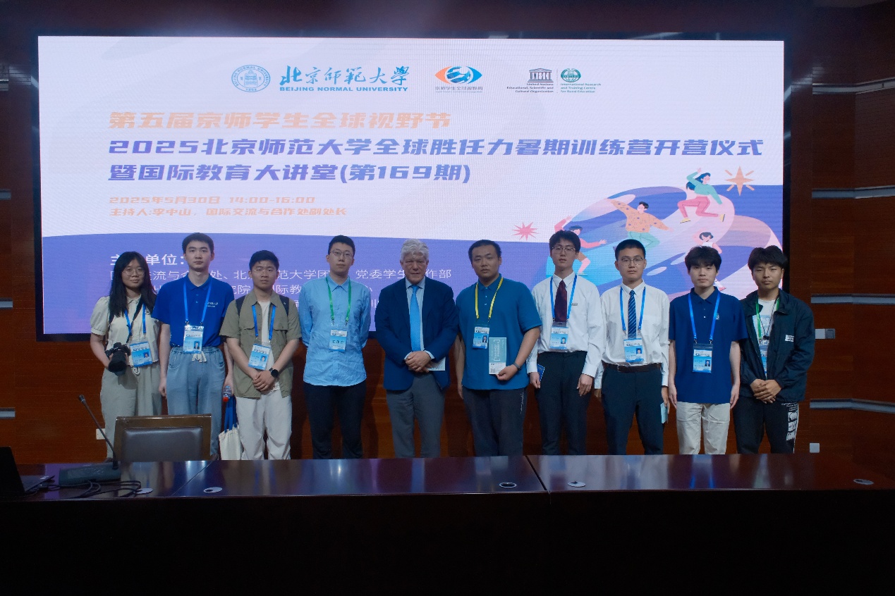 2025年5月30日下午,联合国前副秘书长、现任日内瓦安全政策中心研究员、中国教育发展战略学会国际胜任力培养专业委员会高级顾问法布里齐奥·霍克希尔德-德拉蒙德(Fabrizio Hochschild-Drummond)先生应邀出席2025yl6809永利集团全球胜任力暑期训练营开营仪式并作题为“可持续发展目标与人工智能”的特邀报告。公司yl6809永利“形势与政策”小组组务总监周逸峰,副组长兼宣传专员龙思翰,原外联专员牛广鹏,组员张桄玮、马晓羽和24级新成员代表受邀参加活动,并与法布里齐奥先生进行了友好交流。