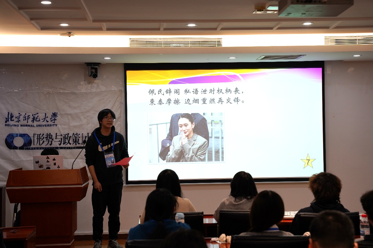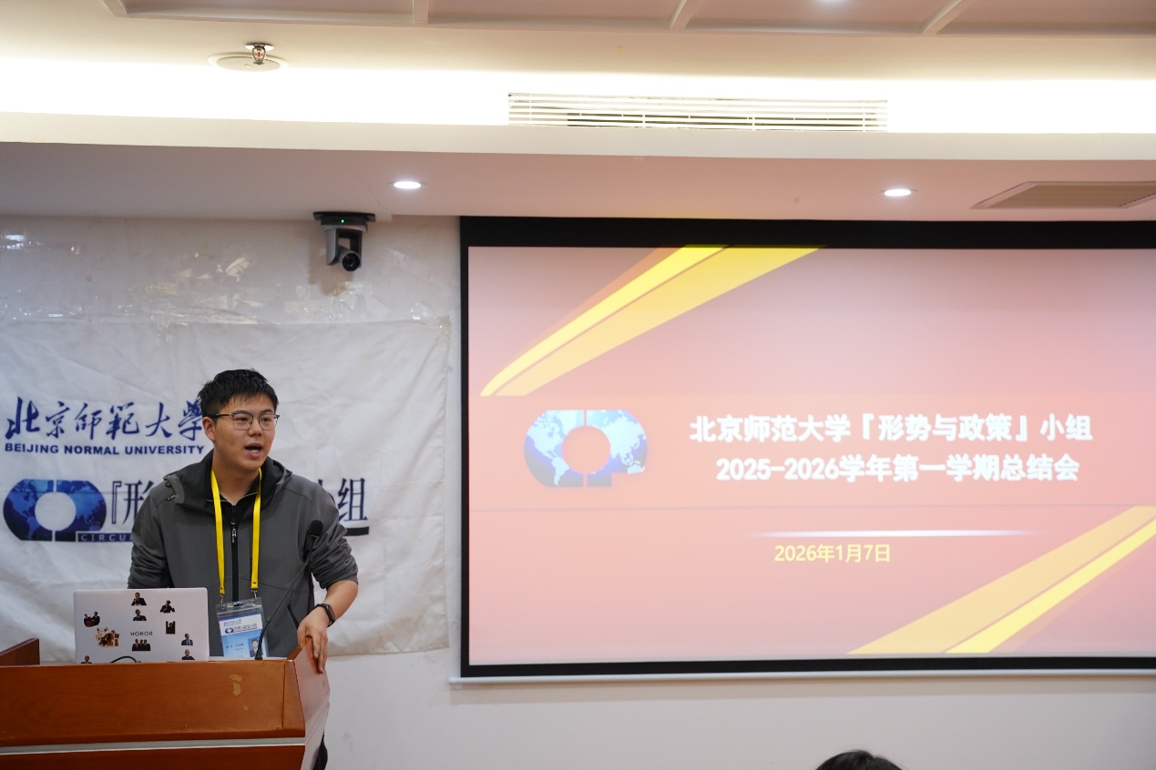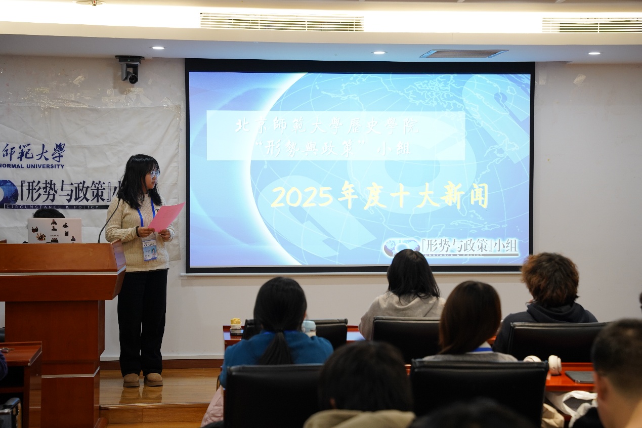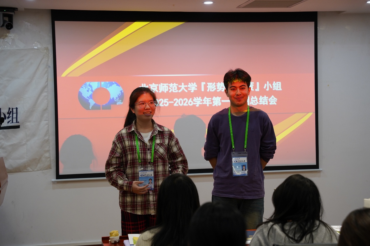本次总结大会由组织专员伍泽榕主持。王梓蘅同学宣读了由小组成员自行评选的2025年度“国际十大新闻”,以小组视野重温国际舞台风云变幻;陈鑫玥同学宣读了2025年度“‘形势与政策’小组十大新闻”,回顾了本年度小组的丰富活动和精彩瞬间。